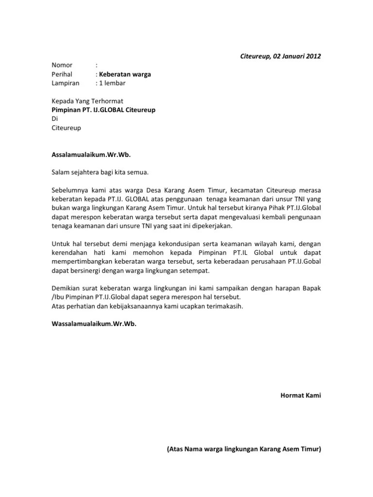 Last updated 25 june 2020. Bukti identitas diri sebagai warga negara indonesia yang sah; Contoh surat keberatan warga doc, contoh surat petisi penolakan pimpinan, surat keberatan warga pembangunan, contoh surat petisi penolakan . Surat pernyataan diatas materai tidak keberatan . Surat pernyataan ijin dr pemilik .
